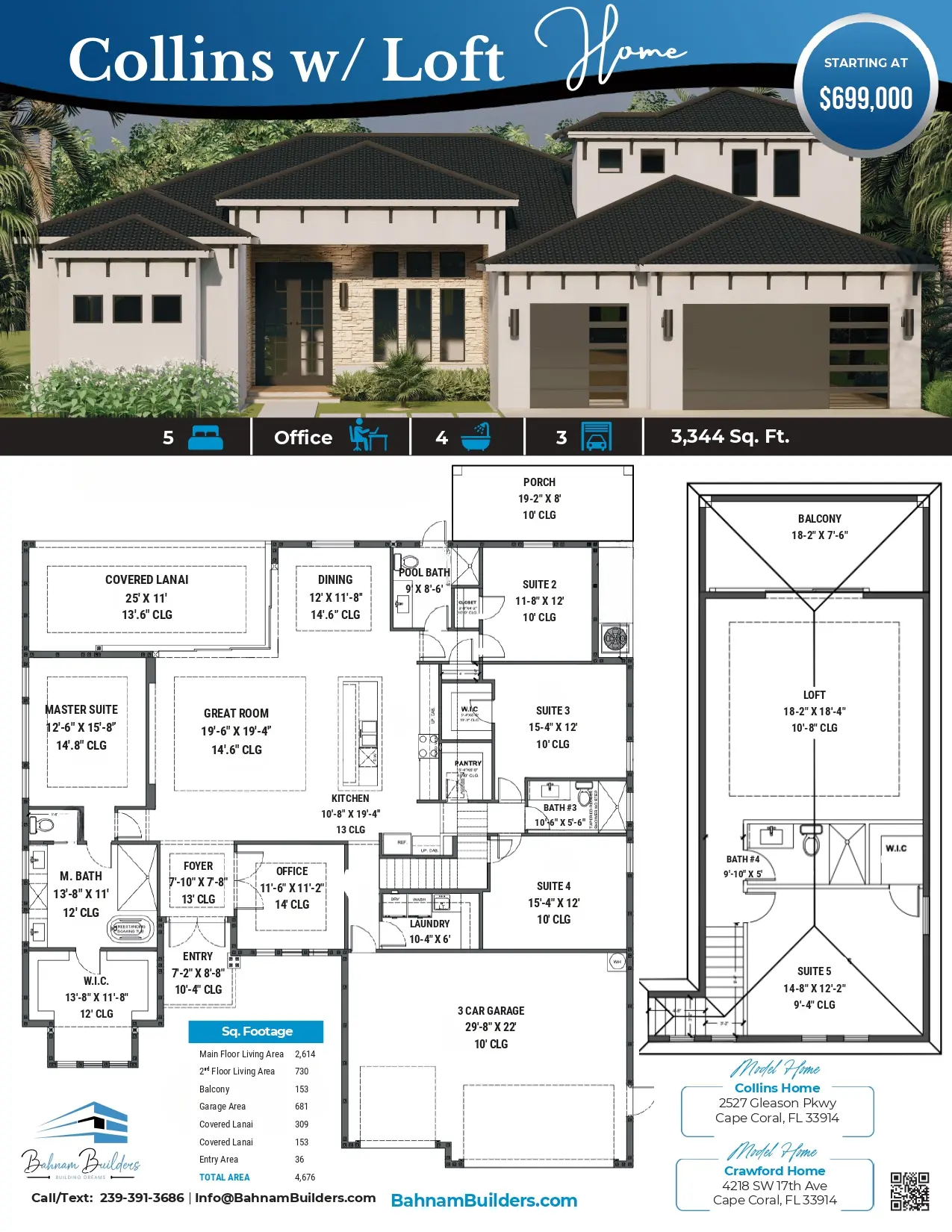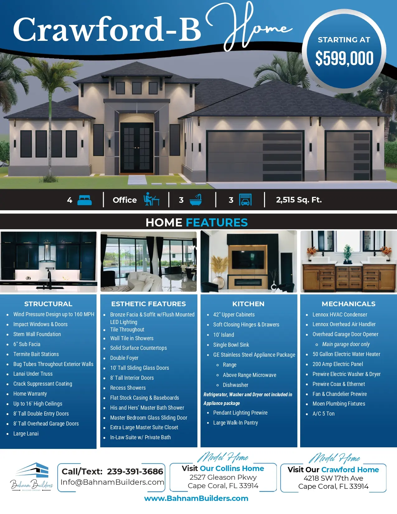 *Prices on floor plans, features, specifications, and materials are subject to change without notice. Prices are based on a standard city water and sewer Cape Coral lot. Additional costs may be incurred on oversized lots or excessive clearing required. Room dimensions are approximate. The price is for base-level options and does not include upgrades and lot/land.
