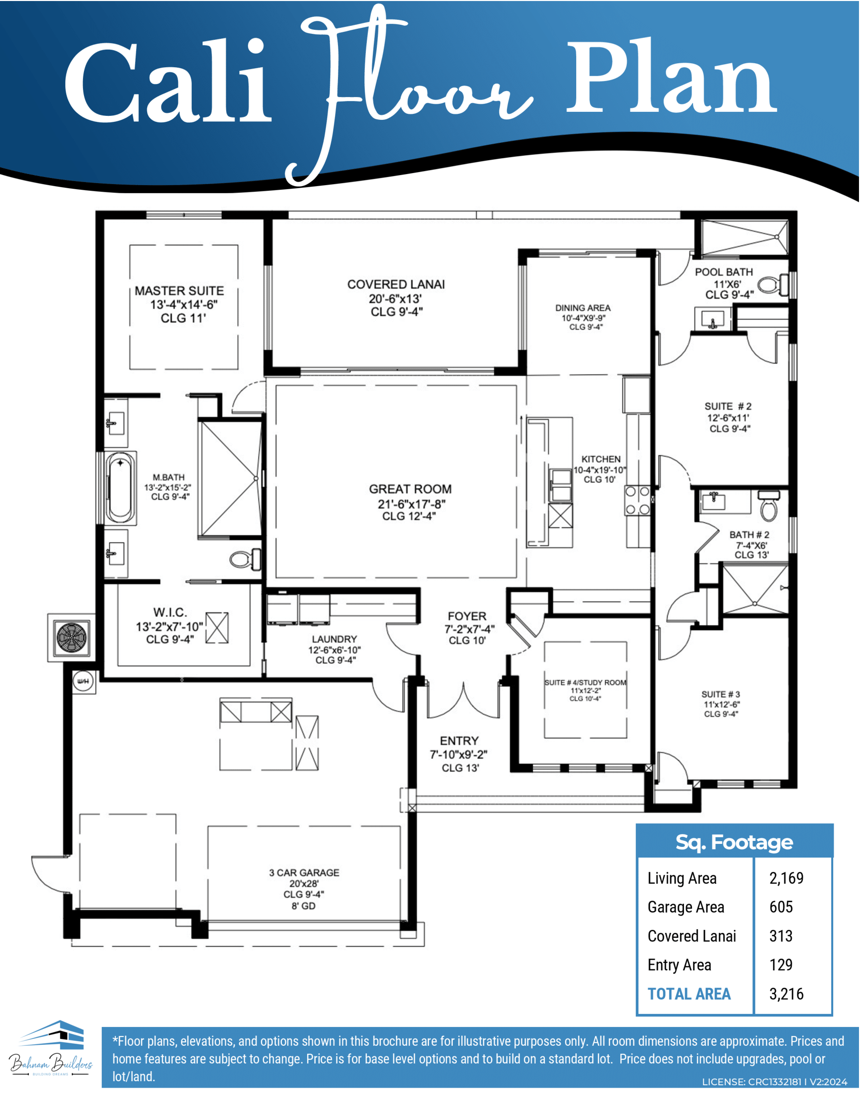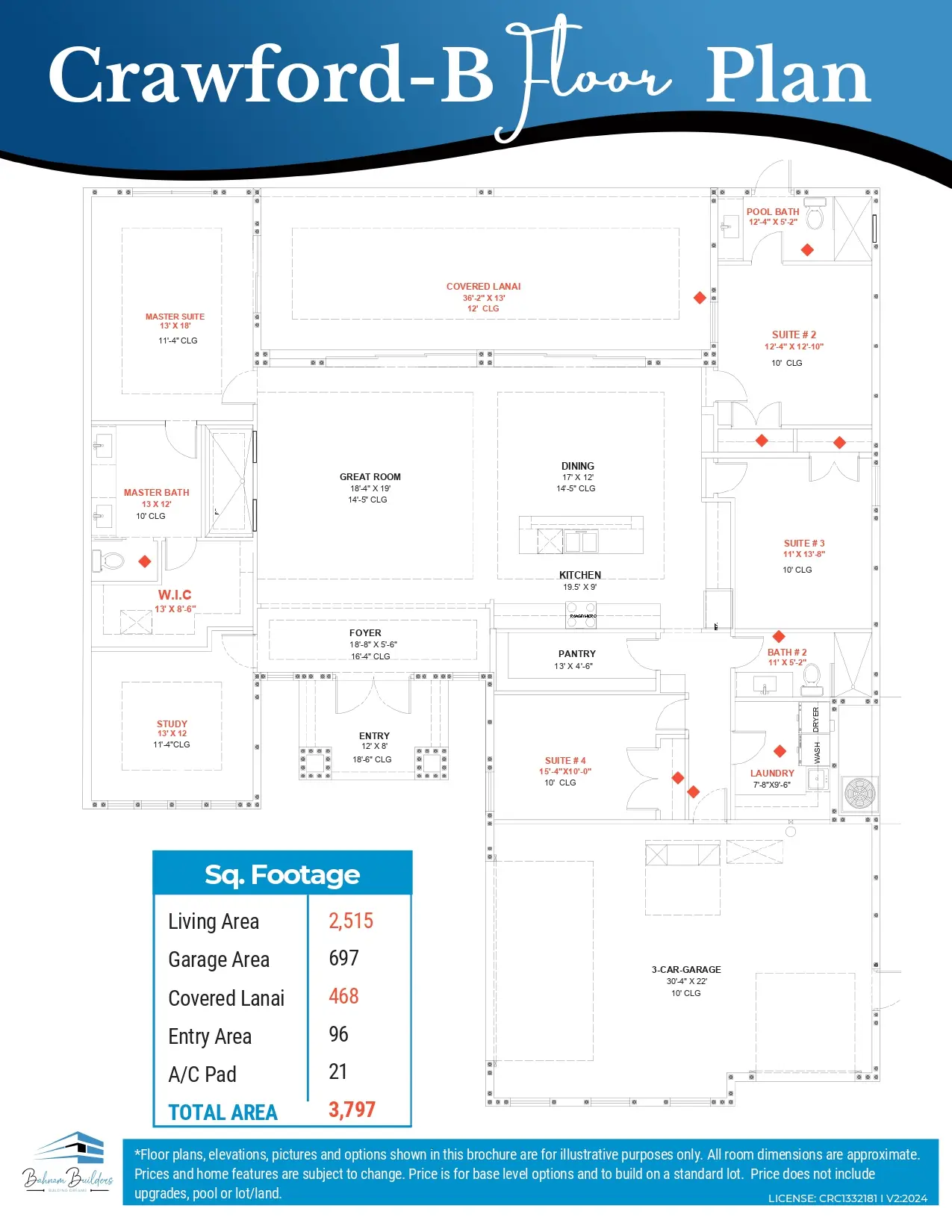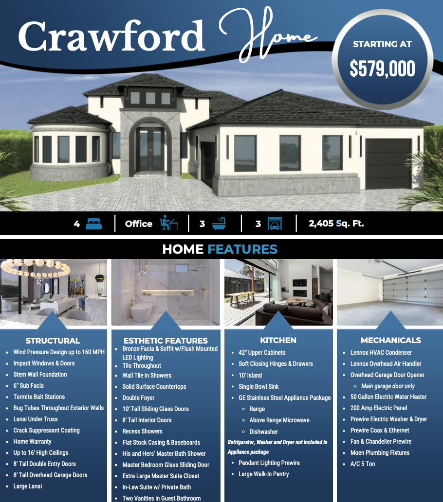 *Prices on floor plans, features, specifications, and materials are subject to change without notice. Prices are based on a standard city water and sewer Cape Coral lot. Additional costs may be incurred on oversized lots or excessive clearing required. Room dimensions are approximate. The price is for base-level options and does not include upgrades and lot/land.